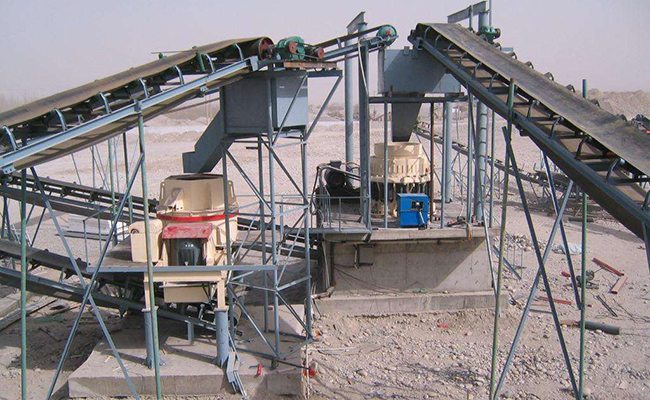 時產200-250噸河卵石制砂設備,通過自卸車將小于210mm的石料送入振動給料機,振動給料機把石料均勻的送入CS高效彈簧圓錐破碎機,圓錐破對石料進行第一段破碎后,通過圓振篩將大于40mm的返回圓錐破重新破碎,40mm以下的石料送入制砂機,最后,通過圓振篩對成品料進行分級篩分,由皮帶輸送機輸送至成品區。