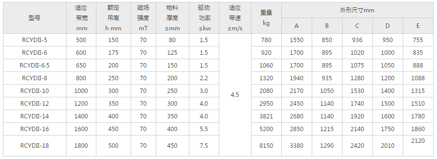 進料粒度:可清除0.1-35kg的鐵磁性物質。