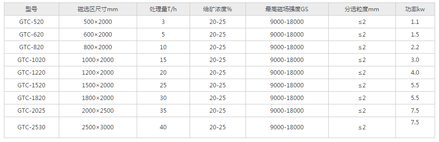 GTC型平板式磁分離機(jī)主要由支架、板式磁選系統(tǒng)、入料攪拌系統(tǒng)、水源系統(tǒng)、卸鐵系統(tǒng)、調(diào)節(jié)系統(tǒng)等結(jié)構(gòu)組成。