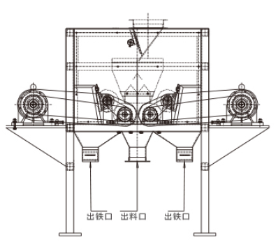 將物料均勻的送到磁選區域后,在設備的磁選區受到重力和磁場力的作用下,利用物料的磁性差異有不同的運動軌跡實現分離,磁性礦物被吸附在磁輥表面旋轉到達精礦區,毛刷將吸附在磁輥表面上的磁性礦刷脫。