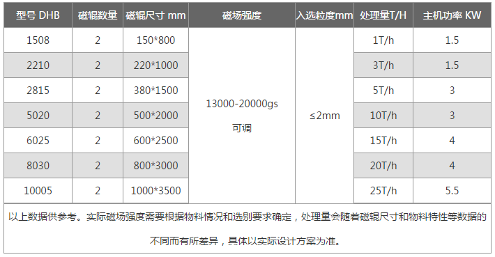 DHD型對輥磁分離機是我公司經多年市場經驗研發的一種新型干選設備。其磁系經過特殊設計、屬于永磁局部半閉合磁系結構;磁感應強度大并且可在13000GS~20000GS范圍內進行調節。