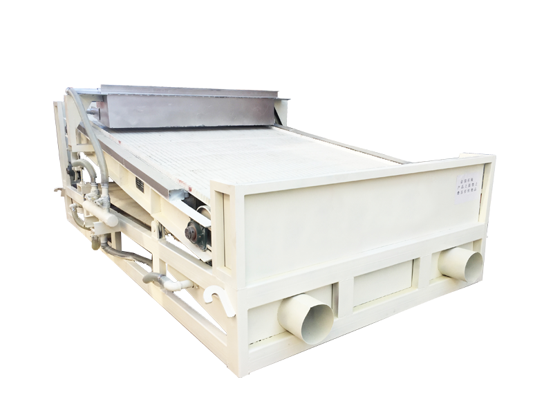 GTC平板磁分離機(jī)主要由支架、板式磁選系統(tǒng)、入料攪拌系統(tǒng)、水源系統(tǒng)、卸鐵系統(tǒng)、調(diào)節(jié)系統(tǒng)等結(jié)構(gòu)組成。工作時(shí),物料流向和卸鐵系統(tǒng)成反向逆流式,非磁性物質(zhì)利用物理學(xué)結(jié)構(gòu)原理自流至出料口,經(jīng)卸礦沖洗達(dá)到完全卸干凈的目的。磁性物質(zhì)經(jīng)長(zhǎng)距離、長(zhǎng)區(qū)域、多次數(shù)被超強(qiáng)磁場(chǎng)吸附,經(jīng)卸鐵系統(tǒng)逆向運(yùn)轉(zhuǎn)至出鐵口,經(jīng)卸礦沖洗達(dá)到完全卸干凈的目的。