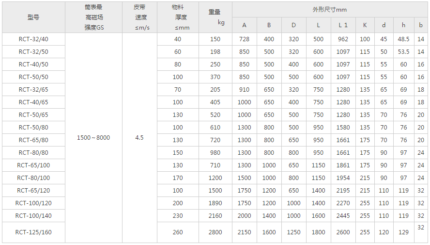 RCT型全磁滾筒與RCTG系列等同,亦稱磁滑輪或干式大塊磁選機。其內部采用高性能強磁材料組成強力磁系,具有磁場強度高、深度大、結構簡單、使用方便、不需要維修、不消耗電力,常年使用退磁率小等特點。可用于水泥、磁選、礦山、鋼鐵、化工、耐火材料、垃圾處理等行業的選鐵。